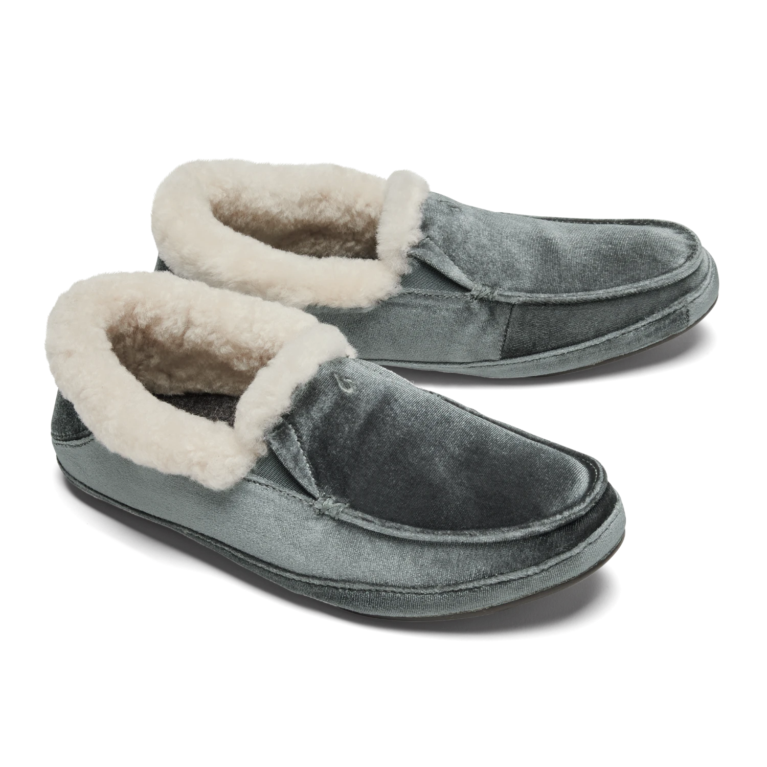Velvet materials reminiscent of the shimmering ocean surface at sunrise—the Kuʻuna Lānui has a sophisticated style made for soaking it in. Lined with cozy shearling, these slippers are perfect for those quiet moments before hitting the streets or surf.