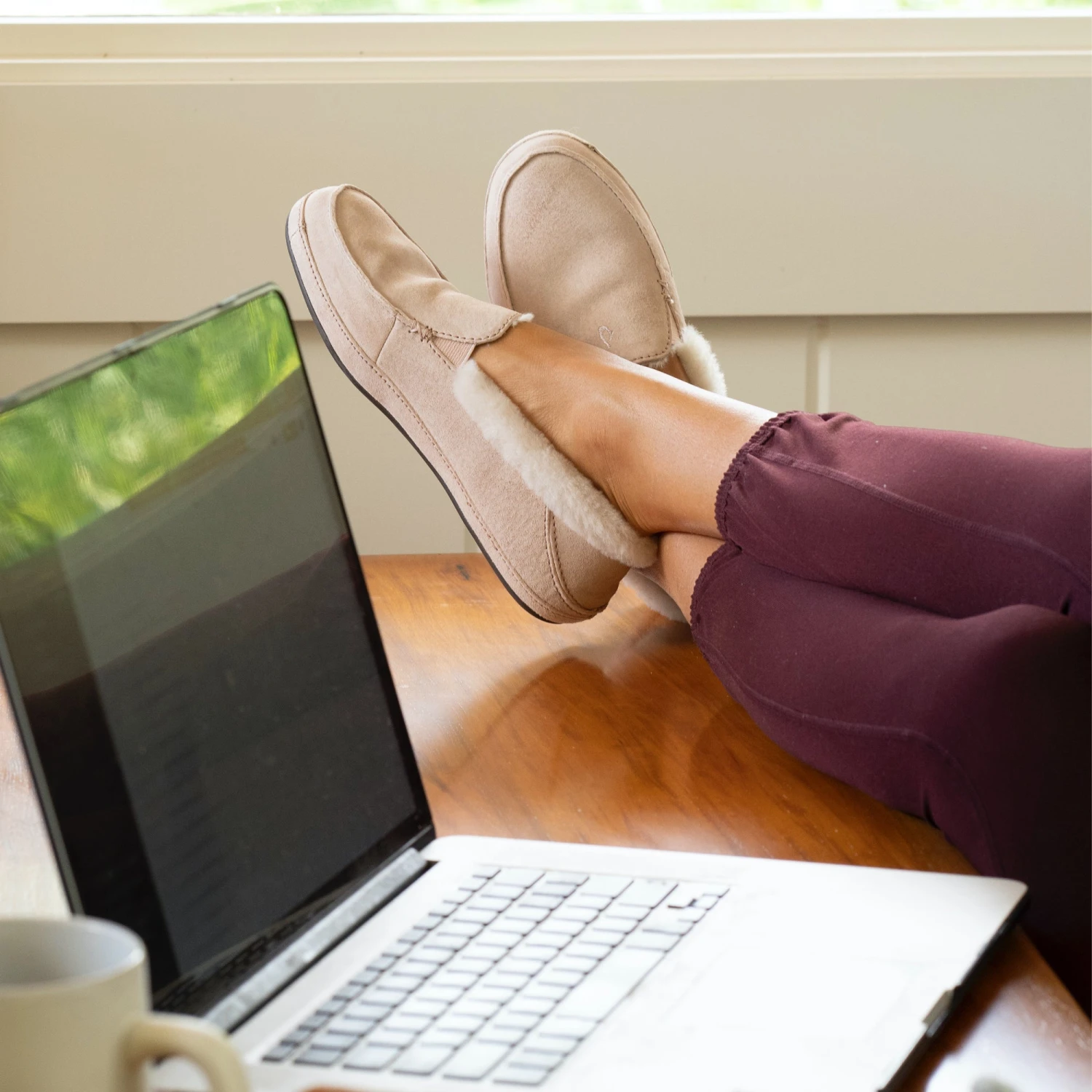 Kick back and relax in the Ku‘una Slipper. Designed with supple leather and soft downy shearling, these slippers are perfect for soaking in those calm, precious moments of peace before a bustling day of hitting the streets, trails, or surf.